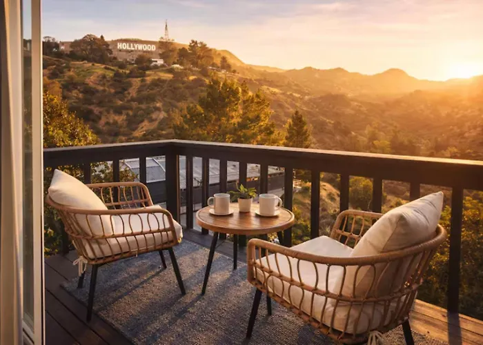 Located in the Hollywood district of Los Angeles, this Los Angeles villa is in close proximity to Beachwood & Westshire bus stop. The property is around 25 minutes' walk from the open-air theatre "Hollywood Bowl", and the sprawling Universal Studios Hollywood Amusement Park is nearly 10 minutes' drive away. Hillside Retreat With Balcony Views Of The Hollywood Sign Villa provides easy access to natural wonders such as the Bronson Canyon (3.2 km) and the municipal Griffith Park (3.7 km).